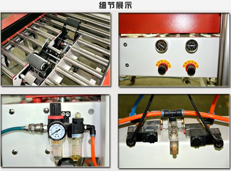XHA-50左右驅(qū)動封箱機(jī)適用于產(chǎn)品裝箱后較輕的紙箱封箱,封箱效果平整、規(guī)范、美觀,采用國際先進(jìn)精加工設(shè)備加工,精選國際知名品牌配件,能穩(wěn)定、品質(zhì)可靠、封箱效率高、適用性強(qiáng)、使用壽命長,已廣泛地應(yīng)用于食品、醫(yī)藥、飲料、煙草、日化、汽車、線纜、電子等國內(nèi)外各行各業(yè)。細(xì)節(jié)展示如下圖: