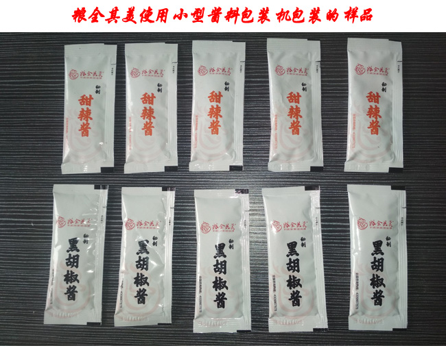 醬料包裝機(jī)一直以來都是我們星火包裝機(jī)械的明星產(chǎn)品,無論是知名品牌還是小作坊,都對它情有獨(dú)鐘,糧全其美旗下的秘制醬料由大包裝和小包裝,這次采購的這臺小型全自動醬料包裝機(jī)是就是用于它的小袋醬料包裝的,之所以選擇這款小型設(shè)備,是因?yàn)轶w積小功能卻不輸于大型的醬料包裝機(jī);這臺小型醬料包裝機(jī)采用立式攪拌,灌裝采用氣動控制,灌裝量和灌裝速度隨意可調(diào).且灌裝平穩(wěn)、計(jì)量精確下料采用瞬間截流方法,解決了灌裝時(shí)的拉絲和滴漏現(xiàn)象;且機(jī)器非常的小型,運(yùn)輸非常的方便,且易挪動