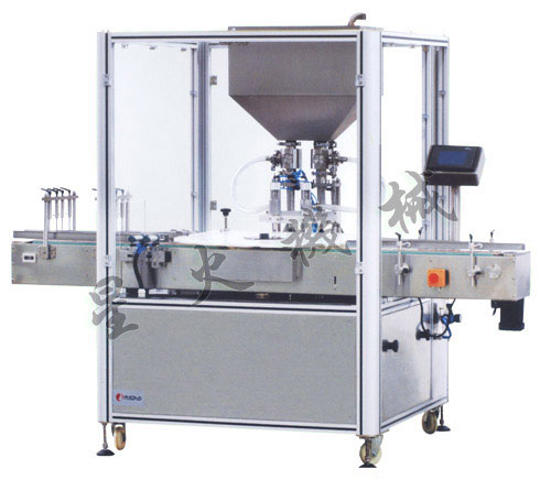 膏霜灌裝機適合物料:中黏度到高黏度的膏霜類物料;灌裝時容器底托的轉速/低速二段,可以穩定的對物料進行脫泡灌裝;灌裝時容器底托的轉速/低速二段,可以穩定的對物料進行脫泡灌裝;具有無容器不灌裝功能.整機采用PLC控制方便簡單;星盤間歇轉動采用分割器傳動,定位精確;氣缸帶動活塞,兩個灌裝頭同時進行灌裝。