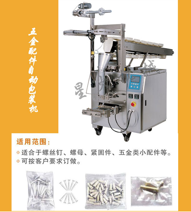 五金配件作為工業制造做的配套產品,它的用處及其廣泛,對于這些小小的各式各樣的配件,因為品種多,數量雜等問題對于包裝卻是很費時間的;星火自動包裝機將自動化技術應用到這一領域,推出的鏈斗式自動包裝機完美解決了這一難題;不僅可以讓整個包裝過程實現了勞動力的解放,并且包裝效率是非常高的;還可以多種配件混合包裝、能滿足不同生產企業的需求。下面小編就帶領大家詳細的了解一下這款五金配件自動包裝機