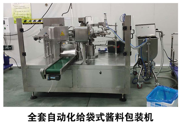 相信有不少的小伙伴們都需要這款全套自動化給袋式醬料包裝機吧,全套自動化給袋式醬料包裝機與物料接觸的部分均采用304不銹鋼,保證了產品的衛生,且比較容易清洗。天津星火全套自動化給袋式醬料包裝機廠家新研發推出的這款全套自動化給袋式醬料包裝機能使物料到產品自動完成,實現了企業自動化生產的需要。