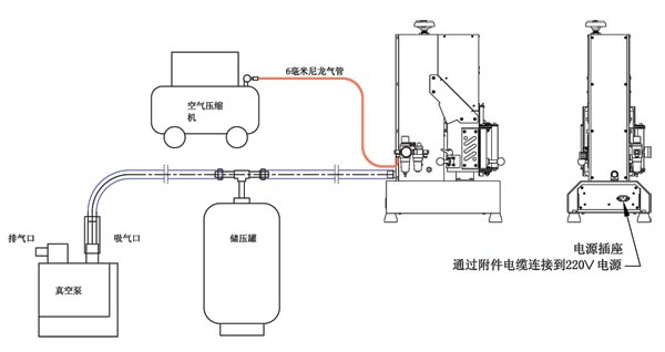 壓縮空氣:泵流量要求0.11 立方每分鐘以上,0.7 兆帕(7 公斤每平方厘米);